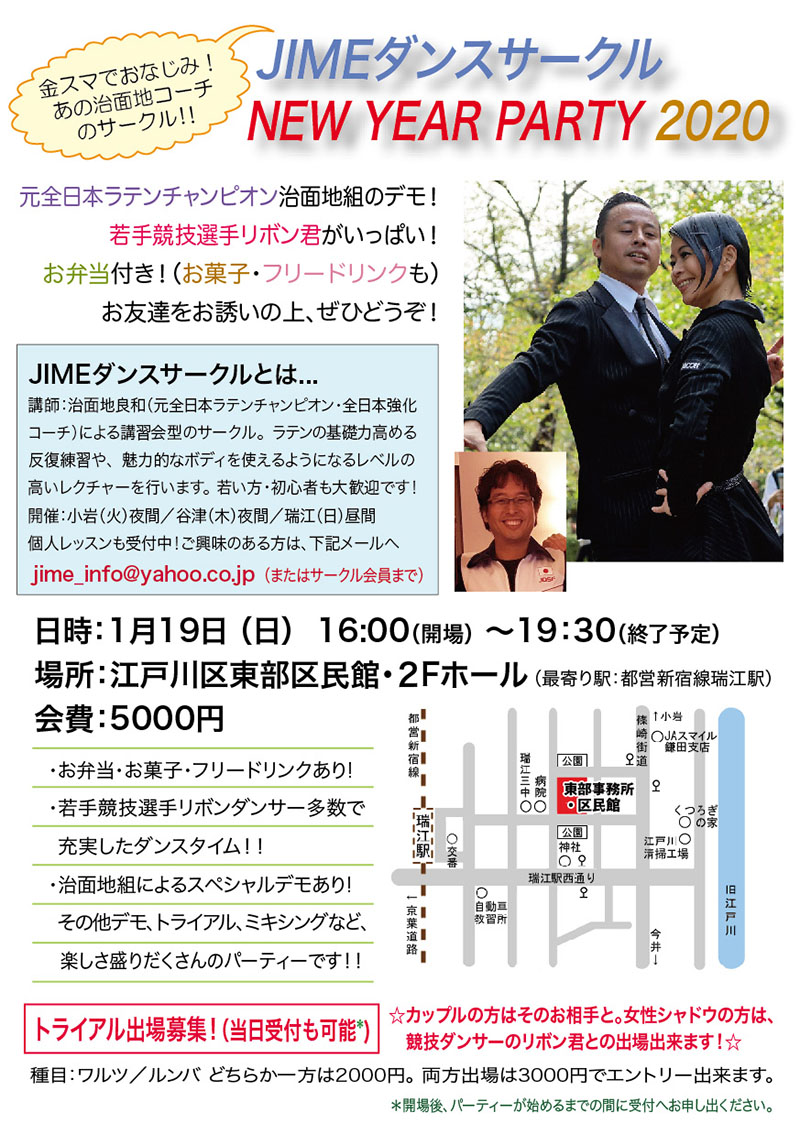 JIMEダンスサークルNewYearパーティー2020を1/19(日)に開催いたします。