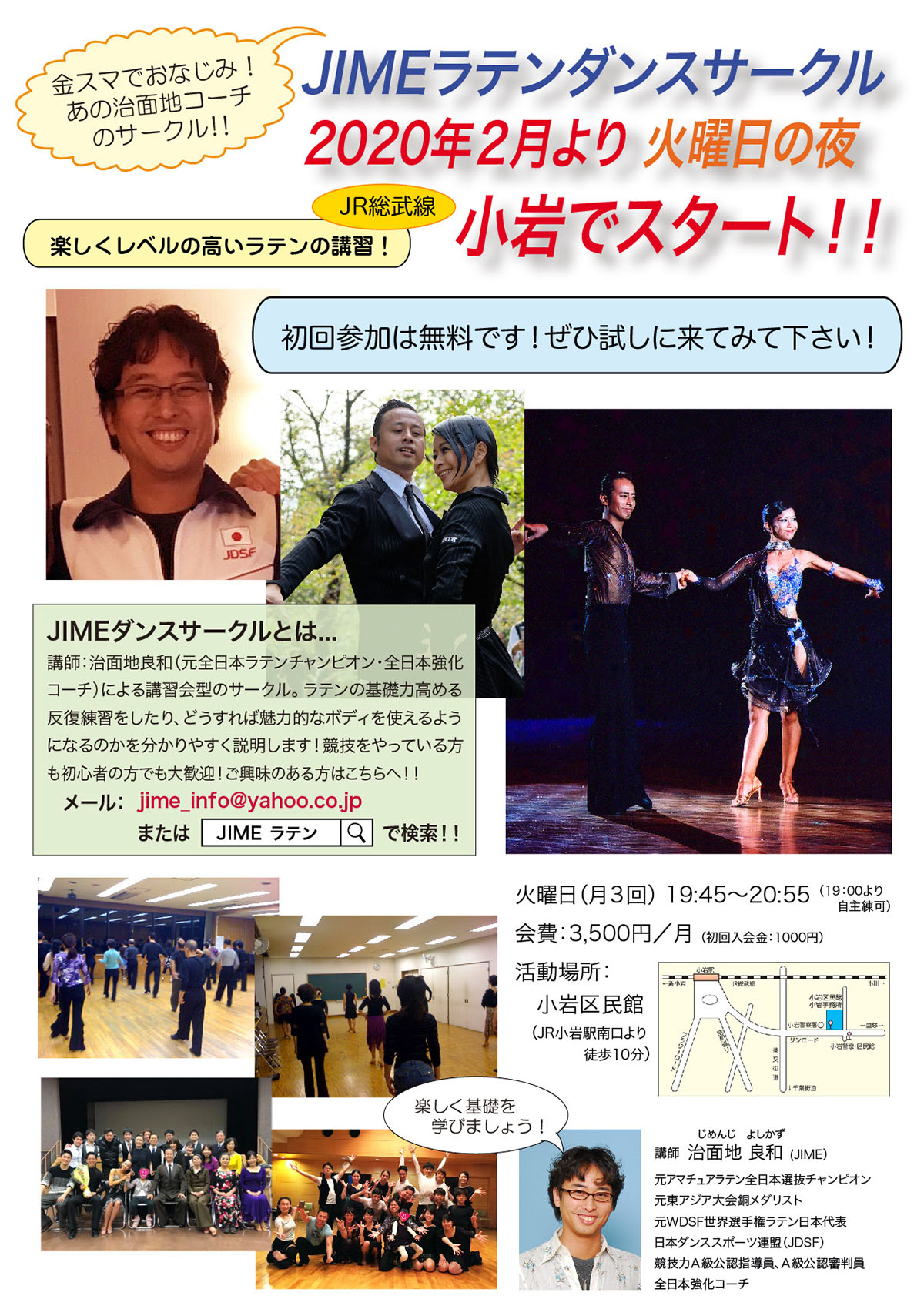 JIMEダンスサークルのウェブサイトからでも受け付け出来ます。